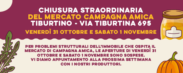 Chiusura straordinaria del mercato Tiburtino di Campagna Amica